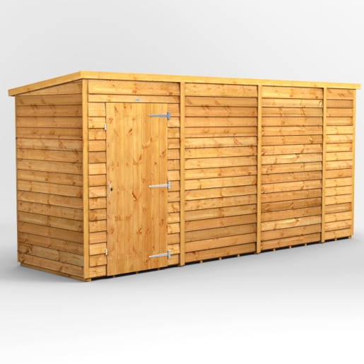 Power Sheds 14 x 4ft Pent Overlap Dip Treated Windowless Shed All timber used is of high grade premium quality, including the roof and floor – No chipboard or OSB. Our wooden sheds use 10mm extra thick rustic looking overlap cladding responsibly sourced in line with our sustainability policy. Lock and key, full fixings and instructions included as standard Garden sheds with windows use toughened safety glass as standard – 500% more resistant to heat and shock than ordinary glass. Pre-fitted to our garden sheds to make assembly even easier. Wooden sheds with premium features including heavy duty 28x28mm framing with which double to 56x28mm framing for increased strength, galvanised rust resistant ironmongery, and advanced wood preservative for increased protection. High performance polyester roofing felt which lasts longer on your garden shed. Multiple national award-winning garden shed manufacturer including UK Best New Business, Award for Innovation and Disruptor of the year.