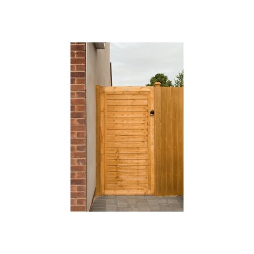 The Lap Gate is a British made traditional overlap gate, perfect for use with 6ft panels of the same construction. Looks great combined with the Forest Trade Lap Panel or Premier Lap Panel. The boards are mounted in a surrounding frame to give it extra strength. The timber is Dip Treated to give a 10 year Anti-Rot guarantee, with periodic re-treatment, and a golden brown colour. Fixings sold separately. Dip Treated finish Strong and robust 10 year anti-rot guarantee Made in the UK Fixings sold separately
